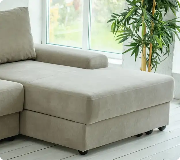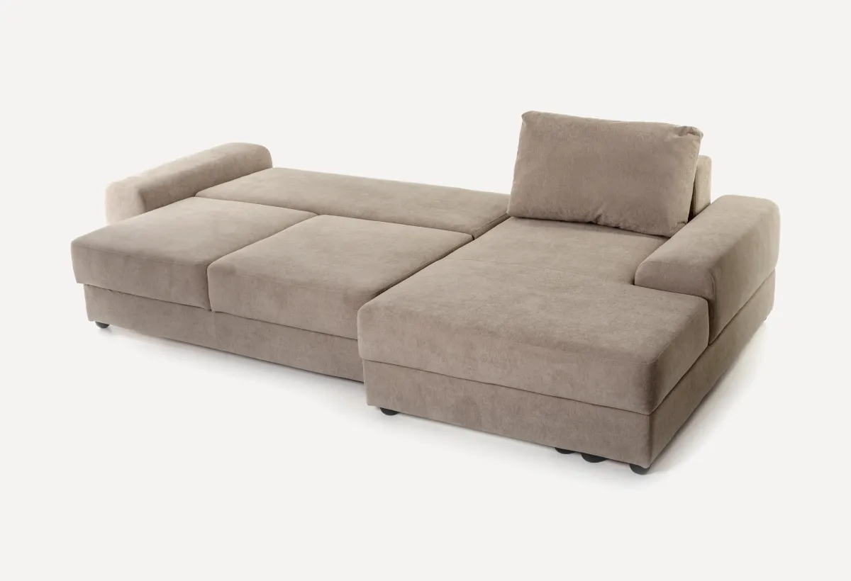 То же, что и средний диван, но с подлокотником с одной стороны. Внутри — механизм трансформации пантограф и ящик для белья. Можно использовать как отдельный диван для маленькой комнаты или как крайний модуль в большой конструкции.